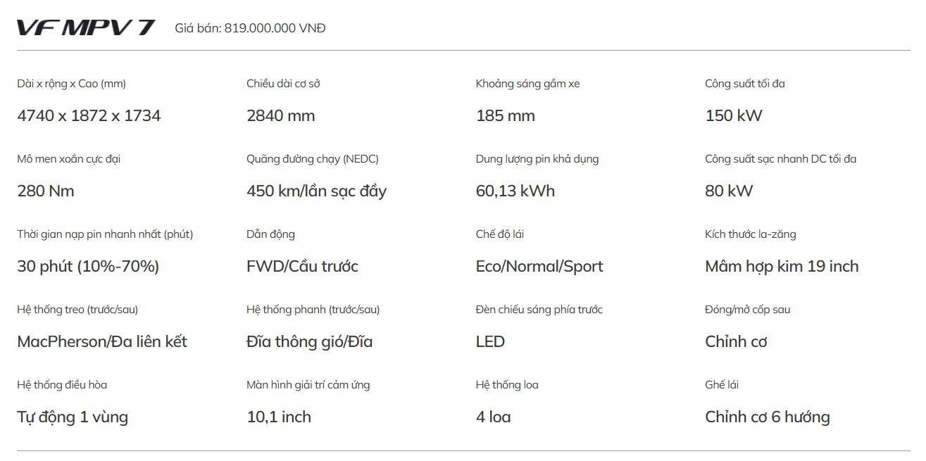 Thông số VinFast VF MPV 7